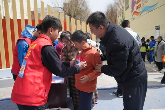 学生党支部党员与附属实验中学的48名志愿者齐聚校园,志愿者们热情地为到场的孩子分发参赛号码簿和定制姓名贴,让每个孩子都拥有属于自己的专属标志,同时为到场家庭详细介绍比赛规则、打卡流程以及安全注意事项,确保每组家庭都能顺利参与并享受其中。