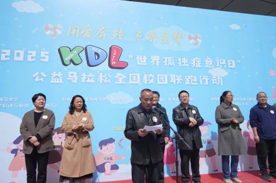 党委书记李强宣布“高原雪豹 爱心联跑”——2025KDL“世界孤独症意识日”公益马拉松全国校园联跑青海站活动正式开幕,并为活动鸣枪开赛。